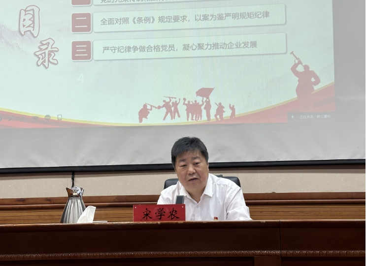 宋學(xué)農(nóng)同志從“把握黨的紀(jì)律建設(shè)的歷史沿革、全面對照《條例》規(guī)定要求,嚴(yán)守紀(jì)律爭做合格黨員”三個方面進(jìn)行詳細(xì)授課?;赝h的奮斗史,紀(jì)律嚴(yán)明是我們黨的光榮傳統(tǒng)和獨(dú)特優(yōu)勢。中國共產(chǎn)黨的成立之日起,就要嚴(yán)格按照馬克思主義建黨原則,把紀(jì)律和規(guī)矩寫在旗幟上。授課過程中,宋學(xué)農(nóng)同志結(jié)合國企改革發(fā)展使命、公司主責(zé)主業(yè)、創(chuàng)建文明城市等重點(diǎn)方面,用真實的案例和詳實數(shù)據(jù),警示大家嚴(yán)守黨的紀(jì)律教育任重道遠(yuǎn)。