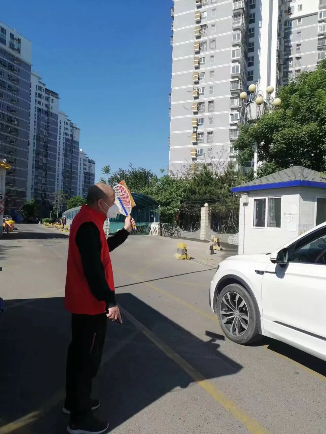 順義建投黨委副書記胡代安帶頭響應(yīng),下沉社區(qū),按照社區(qū)安排,在社區(qū)門口負(fù)責(zé)人員掃碼登記工作。